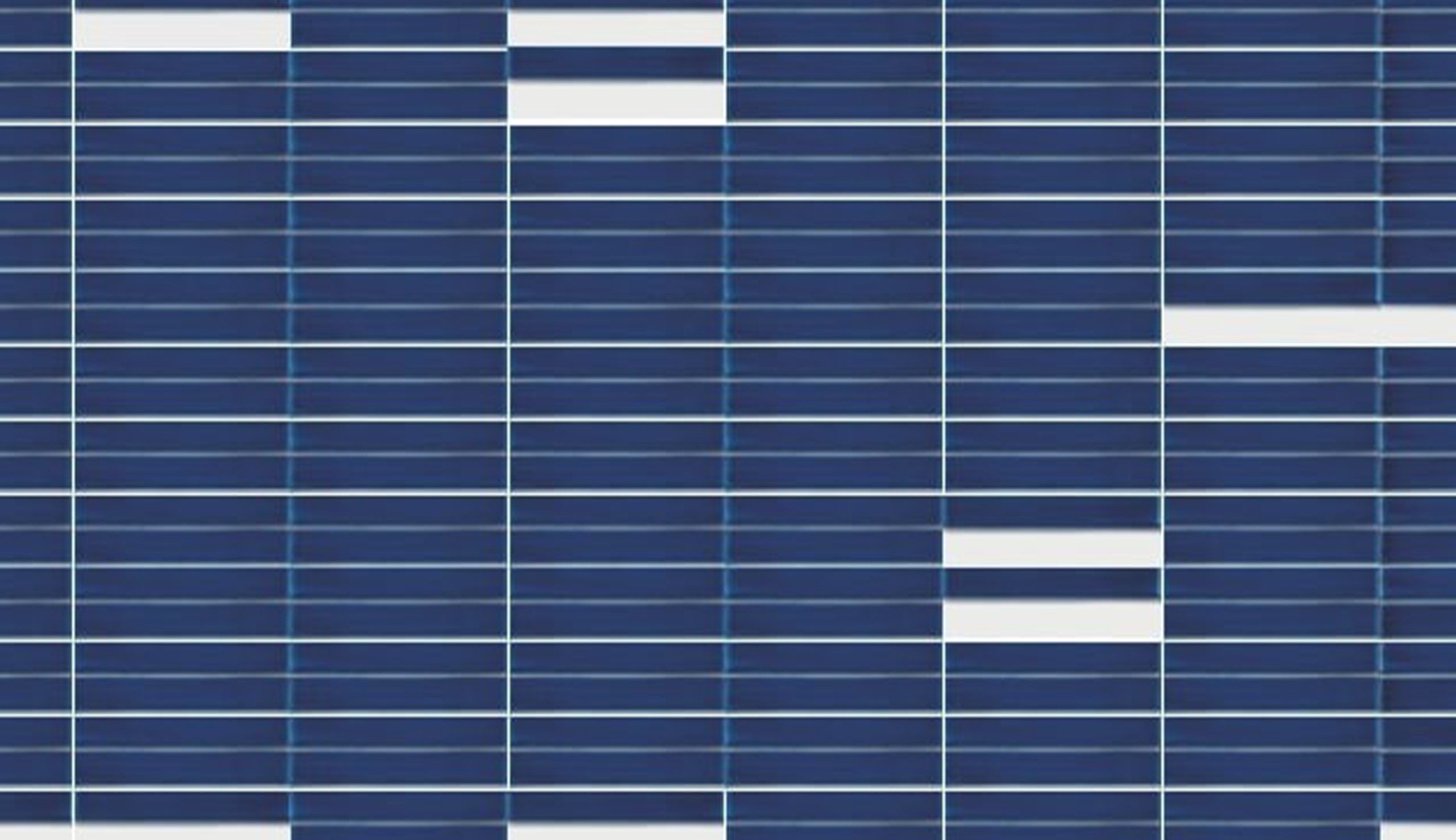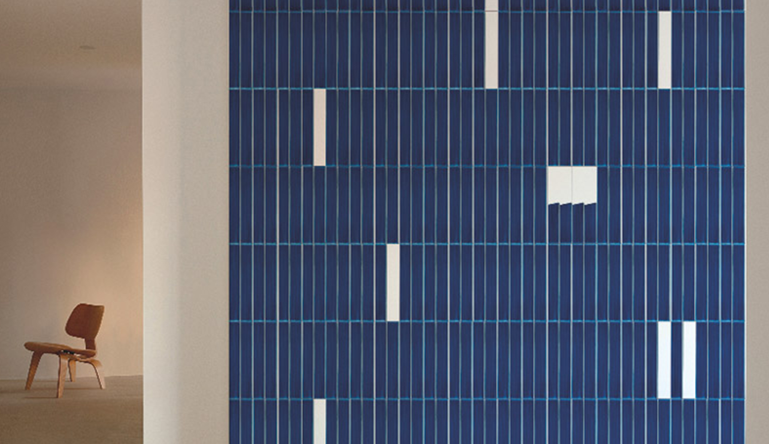 Il risultato è una sovrapposizione continua di lamelle, più che un semplice affiancamento dei moduli. Alcune mattonelle prive di decoro creano contrasti tra pieni e vuoti, spezzando la linearità della parete.